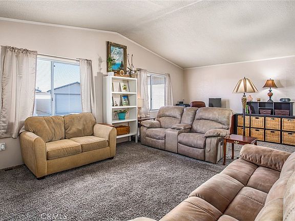 Beautiful, 2 bedroom and 2-bathroom home located in the Wonderful Senior (55+) Community of Mountain Springs in Banning. This home offers a spacious master bedroom with walk in shower in the master bathroom, nice sized guest room with large closet and a small closet, open family room with dining area, lovely kitchen with lots of cabinets, counter space and breakfast nook, indoor laundry room with storage space, covered patio area making it great for entertaining or just sitting out on enjoying your favorite beverage, 2 built in storage sheds, carport and laminate/carpet flooring throughout and Tandem garage. The Mountain Springs Community amenities include beautiful greenbelt areas, solar heated pool, tennis courts, pickle ball courts, basketball, and a club room. Make an appointment today to see this turnkey home before it is too late.
