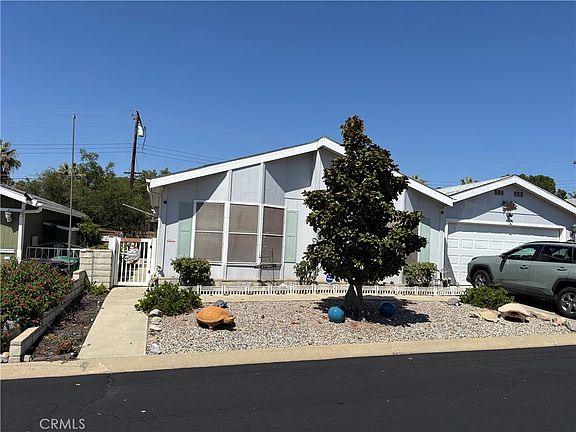 Spacious well maintained Manufactured Home in very desirable 55+ Mountain springs park with beautiful mountain views. This home features three large bedrooms and two large baths, vaulted ceilings, Walk in closet, updated flooring, updated electric fireplace, indoor laundry, chefs kitchen with recessed lighting, and custom backsplash. This home has a very spacious two car attached garage with concreate driveway. The back yard is landscaped with various fruit trees and plenty of space. Stepping out towards the back yard you will find an oversized bonus room with hot tub. This home is close to everything, including shopping, dining, and medical buildings. Commuter friendly and priced to sell..
