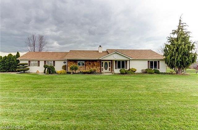 Wonderful Ranch with Open Floor Plan! Inviting front walkway with manicured landscaping. 3 large bedrooms & 2.5 bathrooms. Gracious foyer leads to step-down great rm with rustic floor-to-ceiling stone fireplace. The master bedroom features a bay window, a walk-in closet and a full bathroom with dbl sinks, whirlpool tub & separate step in shower. French doors from both the dining room and great room open to the deck which makes great spaces for entertaining. Almost 1/4 acre stocked pond on the property feeds the well for this home. Oversized 40x72 out building with 22ft high ceilings, electricity and a security system. Home is solidly built with 2x6 outerwall construction and offers wide hallways & doorways for easy accessibility. Roof on the house & out building were replaced in 2013, new propane furnace was installed in 2009, new vinyl flooring in laundry rm and half bathroom in 2014 and newer interior paint in most of home. Home Warranty Included! Hurry!