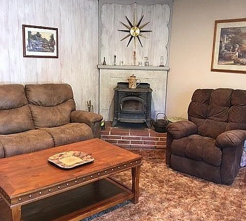 this three bedroom /1.5 bath home backs up to Sierra Pacific land. Lots of privacy on this End of the road location. Two car garage,large laundry room. Over 1600 sq ft. Free standing wood stove in living room. Lots of room for your toys,RV, 4x4's, trailers.large two car with work area.