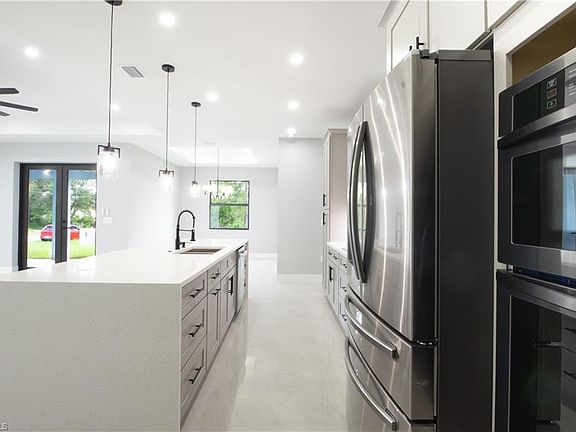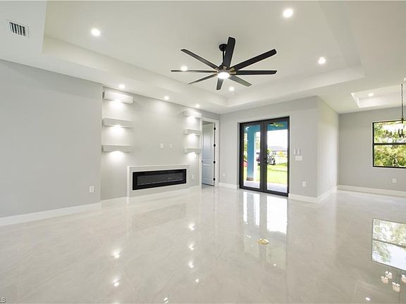 Welcome to luxury living at its finest . This three-bedroom plus den, two-bathroom masterpiece spans 1,800 square feet and offers immaculate finishes throughout, designed to meet the highest standards of comfort and elegance. As you enter, you’ll be captivated by the sleek and modern porcelain flooring, setting the tone for the home’s exquisite details. The heart of the home is the gourmet kitchen, featuring granite countertops, custom cabinetry, a double oven, and a luxurious cooktop stove—the perfect space for both everyday meals and grand entertaining. The open-concept living room boasts a cozy fireplace and a built-in entertainment system, providing an inviting atmosphere for relaxation or hosting guests. The owner’s suite is a true retreat, offering generous space, his and her closets, and a spa-like ensuite bathroom complete with a luxury stand-up shower and a bathtub for your convenience. Every room is designed with style and functionality in mind, featuring custom ceiling fans and ample space to accommodate family and friends comfortably. Situated in a rapidly developing area of Lehigh Acres, this home is ideally located just minutes from RSW Airport, shopping, and entertainment, making it both convenient and desirable. Step outside to discover the ultimate space for outdoor entertaining—your very own custom outdoor kitchen, perfect for hosting memorable gatherings. The expansive backyard provides ample room for a future pool, creating a private oasis where you can enjoy Florida’s beautiful weather year-round. If you’re ready to experience luxury at your fingertips, this home is waiting for you. Schedule your exclusive tour today and make this remarkable property yours.
