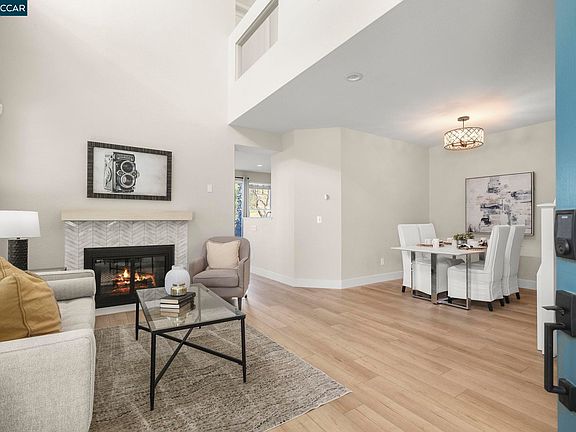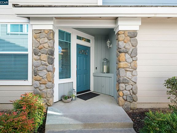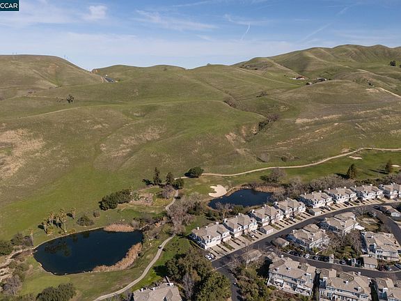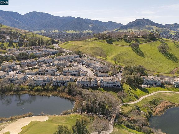 Discover contemporary elegance in this stunning Diablo Ridge residence, showcasing breathtaking views of the Oakhurst Country Club’s fairways, lakes and rolling hills. This meticulously updated 1,595-square-foot residence offers an open-concept design that seamlessly blends sophistication with comfort. The heart of the home features a gourmet kitchen that flows into an inviting great room, anchored by a distinctive double-sided wood-burning fireplace with custom cabinetry. Large windows throughout flood the space with natural light, creating an airy atmosphere that captures the scenic surroundings. The well-appointed primary bedroom suite provides a private retreat with panoramic views extending to Benicia and beyond. This luxurious suite includes dual sinks and a walk-in closet with built-in organizers. Recent upgrades include luxury vinyl plank flooring, fresh carpet in bedrooms, and solid core doors throughout. The low-maintenance backyard features artificial turf and planter beds, creating an ideal setting for outdoor enjoyment. With no rear neighbors, residents can savor peaceful moments while listening to the soothing sounds of of the lake's water feature. This rare find combines modern comfort with natural beauty, creating an exceptional living experience.