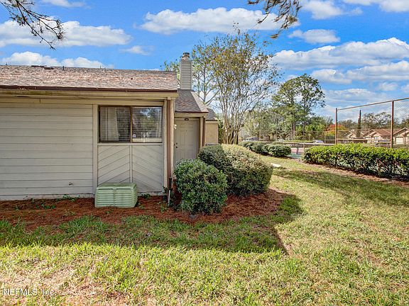 VA APPROVED - VETERANS WELCOME!! Beautiful GROUND FLOOR END-UNIT in Sugar Mill! Enjoy a nice open concept floor plan with living/dining combo & a nicely updated kitchen boasting GRANITE COUNTER TOPS, SHAKER CABINETS, & accompanied by SS APPLIANCE PACKAGE! This Spacious living Room features Vaulted ceilings, wood burning stone fireplace, French (Blind-in) doors, & leads out to a tranquil Tennis court view! Screened-in patio & attached storage closet! Large Master suite featuring plenty of closet space & it's master bathroom w/ large standing shower!! Guest bath includes shower/tub combo. Washer & dryer included. Easy community! A short walk to community amenities including pool & tennis courts. Short 4 min drive to I-295, shopping, and restaurants. This unit has it all!