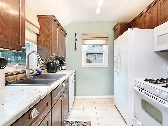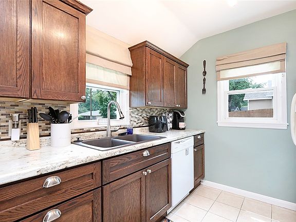 This is a must see Ranch 790 sq. ft. finished living space on a corner lot. Walking into this home you feel the warmth of the living room and the dining area. In the kitchen you have custom oak cabinets with tile backsplash, tile flooring and all the appliances are included. Exiting the kitchen you find a large patio for grilling out with family and friends in a fenced back yard. The main floor has 2 Bedrooms and 1 full bath with a tile tub/shower. The downstairs is partially finished with a 3/4 bath, non conforming 3rd bedroom, and laundry. Oversized 1 car detached garage. New roof '22, siding '23, furnace '19, sidewalks/driveway/sod '24. Close to churches, parks and schools close to Grand View University. Call today for a showing on this super clean home!