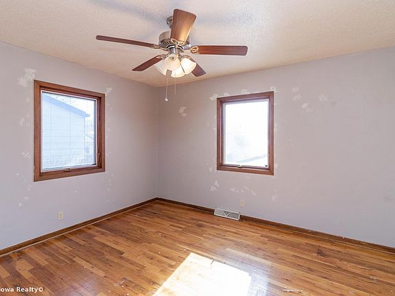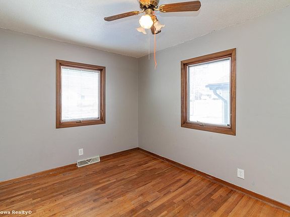 Beautiful home on corner lot with many updates New furnace / AC and water heater New Roof More insulation added in attic and basement walls have been insulated 4 Bedrooms, full bath. Multiple ceiling fans Features include lovely hardwood floors, kitchen with pretty oak cabinets and all appliances included Sliders to a large deck for grilling, entertaining or relaxing in the fresh air Basement remodeled for 4th bedroom with egressed window. Windows have built in blinds Nice location Close to restaurants, theaters and shopping Day care facility and schools are very close and the bus stop is on the corner for convenience Easy access to I 80 / I 35. Large oversized 2 car garage Extra cement pad for parking a camper or boat.