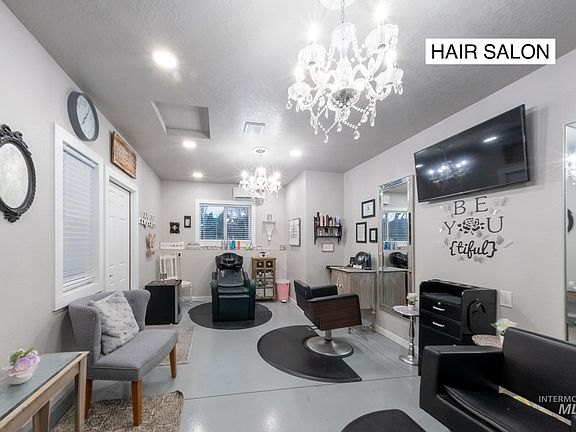 Huge price improvement! Great home in South Nampa, close to schools & freeways. The third bay of the garage transformed into a fully equipped 20 x 11 hair salon with separate entrance, offering possibilities for other permitted business ventures, but can easily be converted back by removing the salon equipment. Salon received an A+ by State Board of Cosmetology. Separate living and family rooms on the main floor. The kitchen has ample counter space, an island, and a sizable pantry for storage needs. Open to the dining area and seamlessly flowing into the family room. Upstairs, discover four bedrooms and a conveniently located utility room, ensuring practicality meets comfort. The master bedroom boasts a large walk-in closet and ensuite bathroom, featuring dual vanities, a separate shower, and a tub. Hot tub in the backyard included! Enjoy the vibrant community atmosphere, with Osborne Park just a short stroll away offering open spaces, a pond, playground, tot lot, disc golf, and pathways.
