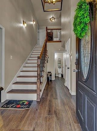 The living area is enhanced with modern comforts of a wood burning fireplace with a blower for cozy evenings in, new energy-efficient HVAC system for year-round comfort, and the security of Vivint, with keyless entry for peace of mind. Outdoor living is equally impressive with a large 28x40 barn providing ample storage for boats, RVs, or hay. The property is adorned with shade & pecan trees, offering a picturesque setting by the pond where one can enjoy the serene view of deer and geese, or provide a haven for horses.