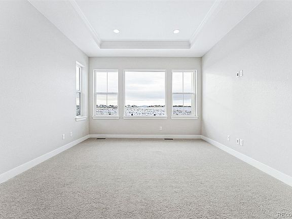 MLS#8266022 Ready Now! FINISHED BASEMENT, 4-CAR GARAGE AND 13' CEILINGS. The Ridge at Macanta home design offers luxurious ranch-style living for the entire household. This stunning home boasts grand ceilings, spacious bedrooms, and an open-concept layout perfect for modern living. With four generously sized bedrooms on the main floor, everyone can enjoy their own space. A fully finished basement provides two additional bedrooms and a versatile extra living area. The light-filled gathering room, located next to the covered patio, invites relaxation and offers the perfect spot to soak in the sunlight. Structural options added include: finished basement, 13' ceilings on main floor, tray ceilings, modern fireplace, tub and shower in owner's bath.