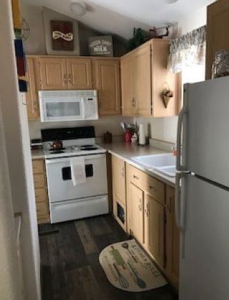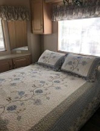 Here is a Gem!. Manufactured Park Model with new luxury flooring, new paint, high quality furnishing, covered patio, work shop shed, boat parking, , level lot, low maintenance and ready to move in for the cool summer. The HOA dues cover water, sewer, trash, common area maintenance, walking trails, picnic areas, horse shoe pits and club house. Cool Pine trees are all over the lot and this location is next to shopping, lakes, golf, medical and resturants.