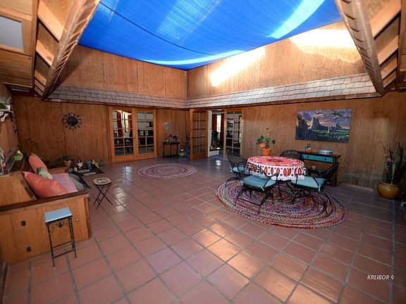 This unique floor plan will draw you in! Come experience all this home has to offer - located in one of the areas in Squirrel Valley which are zoned for large animals plus great neighbors and a quiet street! This home has a Hacienda feel once you step inside this inviting atrium. Nearly 500 sq ft of beautiful naturally lit bonus space gives way to a traditional Hacienda-Style home. You can enter the main living space of the home through French Doors leading to the Living Room, Dining Room, or to the Master Bedroom. Inside you will find beautiful cedar-covered beams, and an intriguing "U" shaped floor plan which is centered around a wood-burning fireplace. The home has 2 guest bedrooms, a full hall bath, plus a master bedroom with an ensuite bathroom. 2 x 6 construction, Dual-pane windows plus a FABULOUS kitchen pantry! The back yard has a TON of room for your horses or other animals. Drive-thru gates are big enough to easily pull your RV/Boat/Toys off the street for safe back yard parking. Lots of possibilities with a yard this size! Make an appointment to see this home today ~