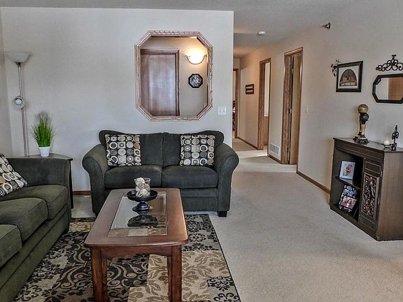 You must see this lovely condo in a Maintenance Free Security Building. There are 3 spacious bedrooms and 2 bathrooms plus an attached large 2 car garage. You will fall in love with the interior of this condo. The owners re-arranged the island area and made the kitchen and dining room more spacious. This area is extra sunny and bright with windows on all 3 walls. There is access to the large maintenance free covered deck off the dining area. The living room has a great layout for entertaining and watching TV. There are 3 bedrooms total including a master Bedroom suite with private bath and walkin closet. One of the bedrooms is currently being used as an office. The laundry area has extra storage along with the separate furnace in the closet area. There is an elevator in this building. The condo fee is $125 per month which includes lawn care and snow removal plus the sprinkler system.