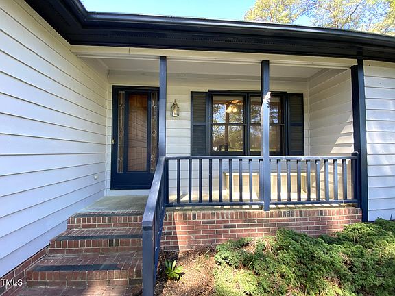 Sit back and relax in the private spacious beautifully landscaped fenced yard with views of the 11th hole at the Pine Hollow Golf Club! This lovely ranch home offers a large family room with vaulted ceiling, exposed beams and beautiful stone fireplace. The interior has been freshly painted, new dishwasher (2021), new quartz countertop in kitchen, new white vinyl fencing in front and on side, black chain link fence added with 3 gates on golf course side, septic tank emptied and lid replaced, dehumidifier system installed in crawl space, chimney cleaned, new garage door and new pull down attic stairs. Walk out to the back deck from the spacious owner's suite with sitting area. This cul de sac lot on .69 acres is perfect for entertaining family and friends with plenty of parking, screened porch, deck and huge yard. There's also a wired workshop with built-ins to organize all your tools and room to be creative. You can have all of this in Wake County with no HOA or city taxes!