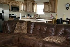 Great family home with vinyl siding, acid stained flooring, great open floor plan and many custom features. The family room is open to the kitchen and features vaulted ceilings. Stainless appliances, custom cabinetry, pantry and island/breakfast bar are just a few of the kitchen amenities. The master suite includes a trayed ceiling, acid stained floors and dual vanity. Other bedrooms have large closets and ceiling fans, and there is room for a family BBQ on the back patio.