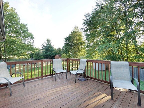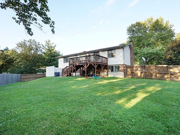 Great Value! Cathedral ceiling; new flooring; renovated kitchen; wood-burning fireplace and half bath in lower level; Newer deck overlooks large, flat backyard with shed; brand new insulated garage doors; custom cellular shades; cul-de-sac street!