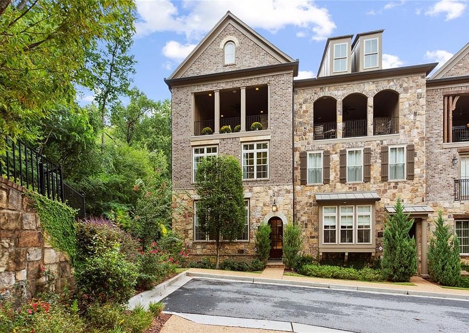 If you're looking for a truly upscale lock and leave lifestyle in a fabulous Vinings location, GATED community close to great eateries, shops and entertainment, then this is it! This rarely available END UNIT townhome is in the newest section of the sought after John Weiland enclave. You will be impressed by the abundance of natural light from the walls of windows on each level, high end finishes, 3 CAR GARAGE, ELEVATOR to all levels, ROOFTOP TERRACE WITH CITY SKYLINE VIEWS and top of the line appliances. This home is a true stunner! Practically brand new, your guests will enter through the handsome stone archway into the Foyer, stepping up to the beautiful Living/Great Room with gas logs fireplace flanked by cabinetry that opens onto the Dining Room with wainscoting that can easily seat 12+. The designer Kitchen has Breakfast Island with sink, Thermador 6 gas burner range, built-in double door with freezer drawer refrigerator, microwave, Bosch dishwasher and KitchenAid warming drawer, lots of cabinetry with pull outs and plenty of counter space, a Butler's Pantry/Wet Bar with beverage fridge, glass cabinetry, sink and Pantry with pullouts, an informal Dining area, all flowing into the Family Room with gas logs fireplace. Step out to the very private deck (no neighbor views!) which looks onto a gated, fenced side yard with green space (perfect for pets), lush landscaping, gas grill and even more privacy by the bank of trees and evergreens. A Powder Room and coat closet complete this level. Upstairs on the Second Level, you will find a sumptuous Primary Suite with trey ceiling and sitting area. The spa-like Bath offers a soaking tub flanked by dual vanities, a separate dressing table, large marble walk-in shower with bench, and a fabulous boutique walk-in closet with built-in drawers and plenty of hanging and shoe space. A secondary Bedroom (currently used as an office), has a full Bath with tub/shower and there is a large Laundry Room which can accommodate full size appliances, cabinetry, sink and folding space. The Top Level is quite impressive with a large living space, entertainment/beverage bar with sink and fridge and a spacious Bedroom with en suite Bath. Be wowed when you walk out onto the Rooftop Terrace with gas logs fireplace and views of the City Skyline! Down on the Terrace level, you will enter a foyer with cabinetry, large coat closet, very spacious Bonus/Rec/Exercise/Media Room (or 4th Bedroom) with en suite Bath, and walk-in closet (could be future wine cellar?). Whether your taste is on the formal side or prefer a more casual look, this floor plan will work for whatever your design style may be and it’s perfect for entertaining. It lives like a “big” house, but with none of the major upkeep. Hardwood floors on Main and Terrace levels, neutral carpet on others, 10’+ ceilings, super storage space and a RARE extra 2+ CAR PARKING PAD for exclusive use of owner as part of the unit. Paces View offers a clubhouse, beautiful resort-like pool, outdoor fireplace and bar, fitness center, wonderful neighbors and a great lifestyle. This home is truly in the “off-the-charts fabulous” category, waiting to make it YOURS! Super close to I285/75, Vinings Jubilee, River trails, The Battery - All of this and with LOW COBB COUNTY TAXES!