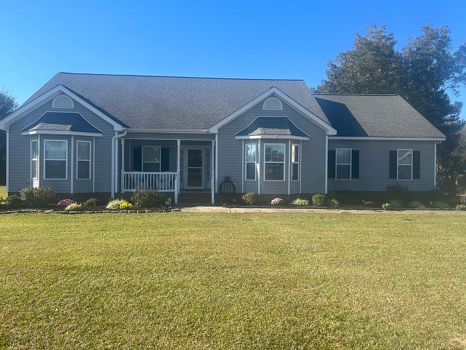 This 3 bedroom, 2 bath home with1500 sq ft with 2car garage has been completely painted thru-out. Master bedroom is very spacious with large walk-in closet, and master bathroom has a tiled walk-in shower with huge vanity and garden tub. Kitchen is very spacious with lots of cabinet space and storage. 2nd and 3rd bedrooms have large closets, ceiling fans and vinyl flooring. Offering Front and back porches, just installed the back porch with new updated vinyl porch railings and the view from the porch is perfect for seeing the deer roaming. Has a heat pump for heating and air, fenced back yard and large attic space for storage and is only 10 minutes from ECU Health in Greenville and 20 minutes to Kinston. 1 year