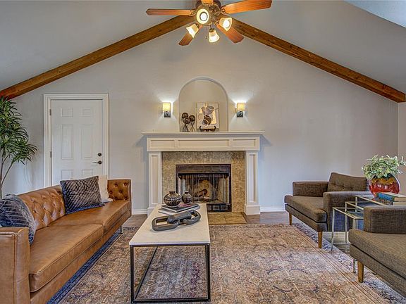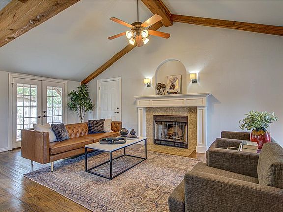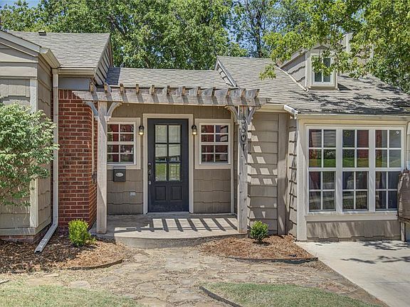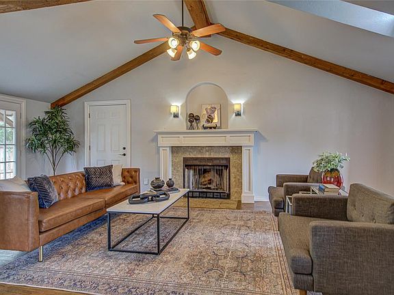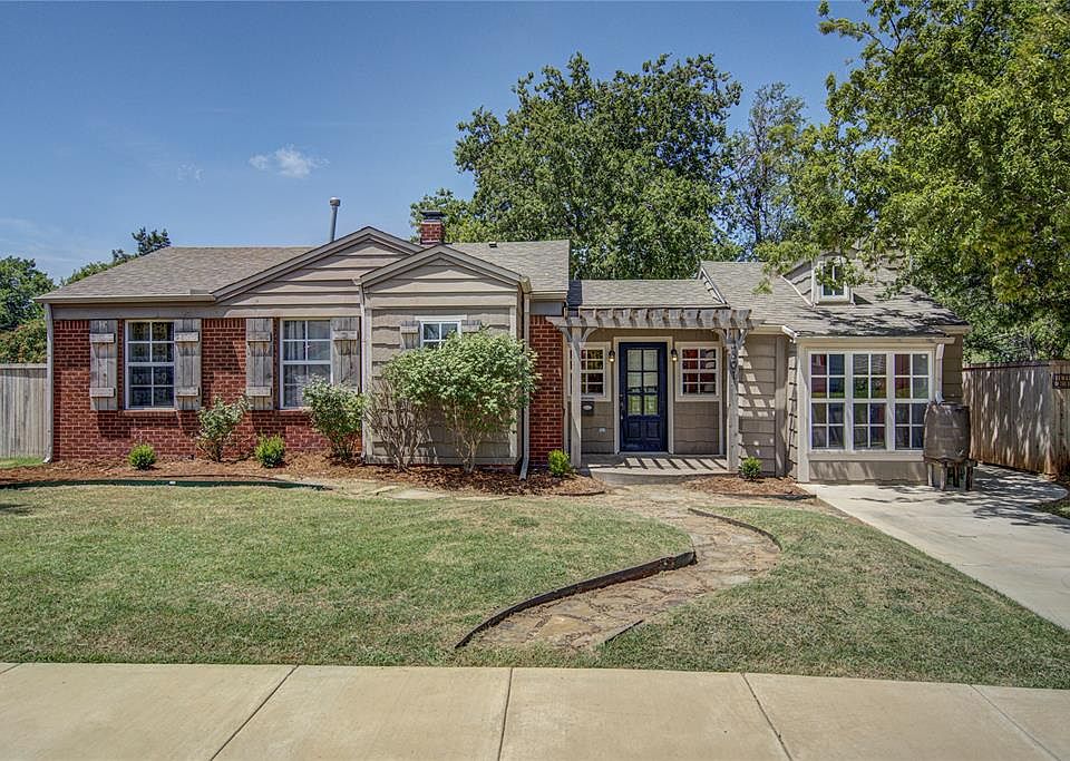 Experience the perfect blend of modern updates and vintage charm in this beautifully remodeled bungalow, ideally located in the heart of the OKC urban core. A short stroll will take you to the vibrant 39th St district, plus close to other Urban OKC core districts. This home has been meticulously renovated, showcasing its unique character through stunning architectural details such as archways, cedar beams, and custom features throughout. The kitchen boasts multiple archways, custom cabinets, granite countertops, and a glass tile backsplash. The open-concept living and dining areas include a vaulted ceiling, fireplace, and French doors leading to the back patio. The dining room also features French doors to the patio and an exposed brick wall. The hall bathroom is designed with an arch over the tub-shower area and a vessel sink. The third bedroom includes washer and dryer connections in the closet. The expansive back patio is perfect for entertaining or relaxing, and the large side yard offers plenty of space with a fully fenced yard