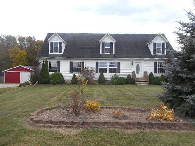 Huge Cape Cod on 4.23 acres of land. View the backyard from the large deck off the kitchen. Den could be additional family room. Nice pole barn with cement floors could be used as a garage. the home is connected to the city water. Move in condition with new carpet,vinyl, and freshly painted through out the home.