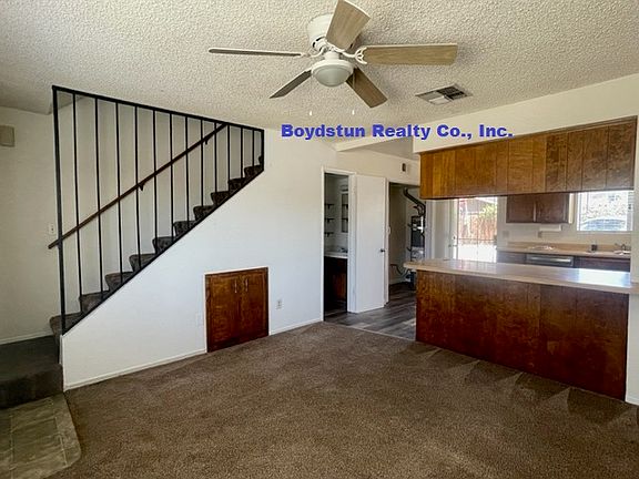 Fresh 2br/1-1/2ba townhome features a large kitchen, loaded with cabinets, a gas stove, and a new stainless steel dishwasher. New wood-like flooring in the kitchen and bathroom, tiled shower, indoor laundry, and off street parking.
