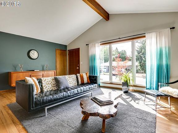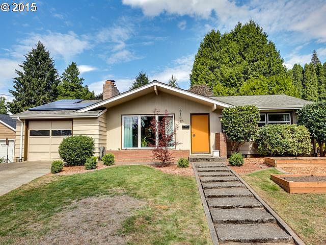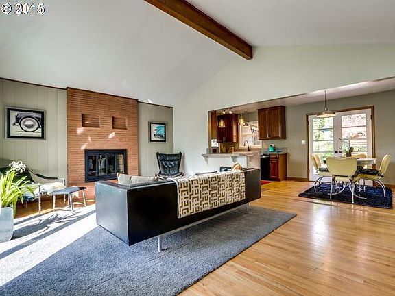 Fabulous light & bright mid century modern ranch featuring vaulted ceilings in living & family rooms, both w/ brick fireplaces. Great open floor plan, fully remodeled kitchen, 2 beds, 1.5 baths, w/ large private fenced yard w/ shed. Slider off dining or family room lead to lovely paver patio perfect for outdoor entertaining. Nestled on a quiet street w/ solar panels, raised garden beds, & charm galore!