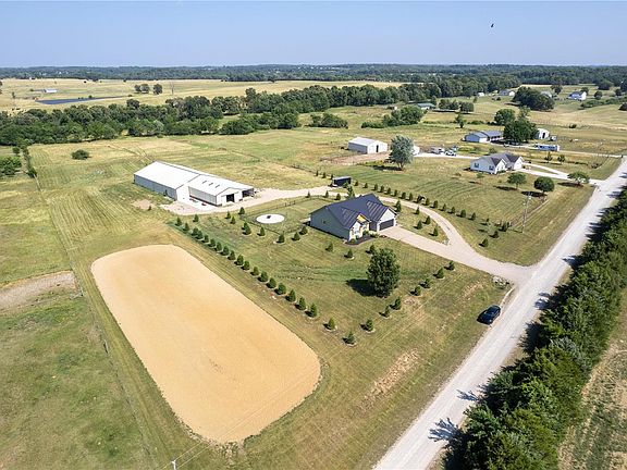 EQUESTRIAN dream at 8.73 acres with indoor & outdoor arena and 7 stalls! Has a stunning 3 BD/2BTH ranch. Barn scraped floors meet you as you enter the foyer and throughout the vaulted open floor plan Great room w/ electric fireplace, dining & custom kitchen w/ large island and quartz counters!  Kitchen has tons of storage, Samsung Smart Tuscan SS appliances & a main level laundry. Wait till you see it!  Master has on suite and walk in closet. Step outback an enjoy the poured patio & stamped Flagstone Concrete Pad/firepit, ready for your relaxing evenings. Yard is fenced for children/pets to play safely.  Short walk to the barn, equipped for your every need: 7 stalls, indoor arena 100x60, stable area approx 45X50 w/ electric & water, concrete floor in Shop Area & outdoor pad, topped off w/ outdoor riding arena 240x80. The acreage is cleared/landscaped for your mini farm or family fun!  See all the 2021/22 updates!  Your own Chickens & coop.  Move right in with everything ready for you!