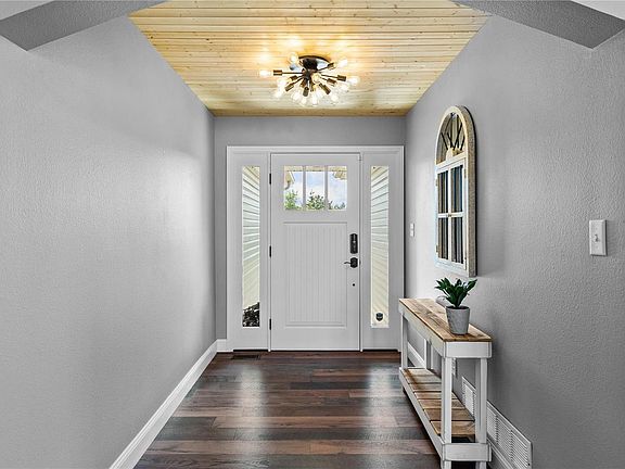 - Kitchen Island, Custom Cabinetry, Eat-in Kitchen, Solid Surface Countertop(s), Double Vanity, Dining/Living Room Combo, Kitchen/Dining Room Combo, Vaulted Ceiling(s), Entrance Foyer