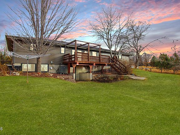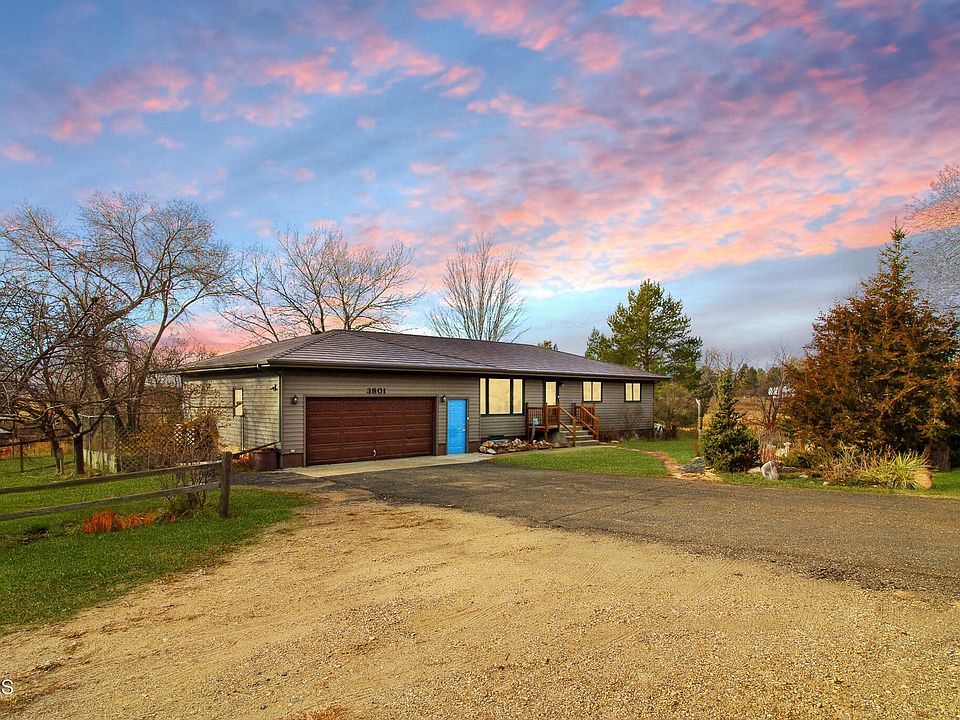 Escape to your serene oasis on 4.5 sprawling acres surrounded by nature's beauty! This one-of-a-kind property is unique and full of character, boasting breathtaking panoramic views, a walking path, and various fruit trees. (Apple, plum, juneberry, and choke cherry). Zoned for horses, it's perfect for those seeking a peaceful rural lifestyle. The property includes a 19x28 shop with two stalls and a rain barrel cistern system for gardening enthusiasts. The charming, spacious 4-bedroom, 2-bathroom country home features an AVC steel roof and a thoughtfully designed layout. Inside, you'll find a warm and inviting living room with wood vinyl flooring, a kitchen with ample cabinetry, a double sink, nice appliances, and vast counter space with eat-in seating. Adjacent is the dining area with quaint built-in. You'll love the spacious walk-out deck—ideal for entertaining. The open-layout basement offers a cozy second living room, bonus rooms, an oversized laundry room with bonus storage, an HVAC/utility closet, and a walk-out to the fenced-in backyard. The property also includes a garden with a shed and a 2-stall attached garage. Imagine mornings strolling through your private acreage or evenings on the deck enjoying tranquil sunsets. This rare gem is just a short drive from town. A must-see! Don't miss your chance to experience this peaceful retreat—schedule a tour with a Realtor today!