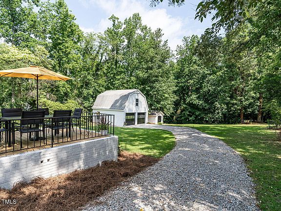 Gem of All Gems!!! Experience gorgeous one-level living in this stunning 3-bedroom, 3-full-bath ranch home, nestled on a quiet, mature, and peaceful .80-acre fenced lot. Beautiful solid hardwood floors throughout add warmth and character, complementing the inviting soft color palette. The modern kitchen features granite countertops, a designer tile backsplash, new stainless steel appliances, and ample cabinets, including a walk-in pantry. Ideal for entertaining, the spacious layout includes a large island, dining area, and family room. The primary bedroom boasts a cozy fireplace and abundant natural light. All bathrooms are fully updated, with walk-in showers and a hall bath that includes a bathtub/shower combo. Step onto the oversized deck overlooking the backyard, creating an amazing outdoor retreat perfect for gatherings, grilling, gardening, playing ball, or simply unwinding after a long day. An incredible detached garage includes work/office space above, perfect for a workout room, office, or yoga studio. A second shed provides plenty of space for tools, lawn equipment, and extra storage. Enjoy all this while having access to everything Raleigh has to offer.