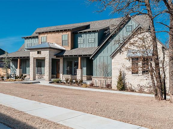 Move-in ready Belmont plan with a Modern Hill Country exterior is nestled on a large wooded corner homesite in our sought-after Town Square community! This home is our first of our "Estate" collection to be built in our new Phase 7 of Town Square which gives you the best of both worlds with half-acre homesite plus an amenity-filled community. Our Belmont plan features 4 bedrooms, 4 full baths, a study and an upstairs bonus room(featuring closet + full bath). You will never want to leave your home when you are enjoying reading your favorite novel in your private library. The chef of the family will love this kitchen that is complete with a huge island, farm sink, double ovens and a walk-in pantry. This home was made for entertaining with the kitchen overlooking the dining area and the living room that features a vaulted ceiling with beams as well as a stone to ceiling fireplace. Off of the dining room is your own Wine/Coffee bar complete with craftsman cabinetry and an area for a wine fridge! Relax in your spacious owner's retreat that has site finished wood flooring, a double vanity, a super shower with two rain heads and a massive master closet connecting to the laundry room! Town Square is Edmond's historically inspired community featuring a clubhouse, resort-style pool, fitness center, youth rec center, playground, community garden, wooded green belt with walking trails, and a lake with a fishing dock.