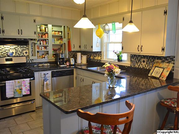 HOKES BLUFF- ACREAGE- 4BDRM/2BTH- Remodeled all brick family home sitting on 1.9 +/- level acres. Large family room w/ exposed beams and expansive stone fireplace. Kitchen w/ granite and eat in dining. Den. Recent bath remodel to include custom tile shower and has a soak tub. Private back deck great for relaxing & BBQ's. Carport w/ storage. 2 Detached buildings great for storage and hobbies. Large laundry w/ mud room. New roof/HVAC/windows/paint/granite/tile etc within the past 5 +/- years! Only $139,900!