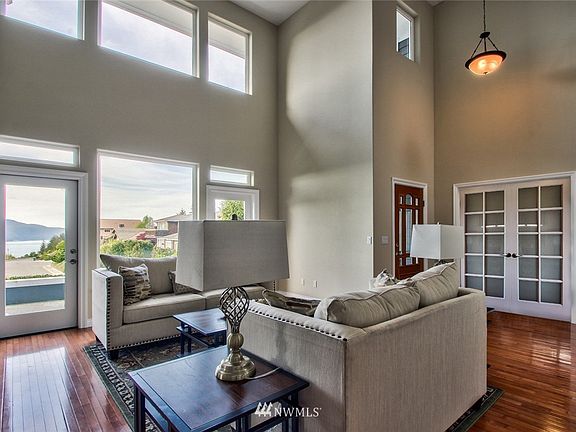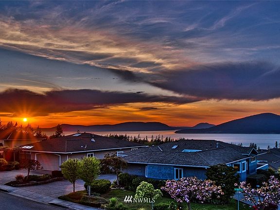 Beautiful NW Craftsman home in desirable Rock Ridge Neighborhood. Walls of glass showcase the expansive northern views of Guemes Channel and islands beyond. Generous room sizes on both floors with vaulted ceilings, recessed lighting, chef's kitchen w/pantry, and both formal and informal dining areas. A guest suite with walk-in closet could serve as main-level master. Upper and lower patio spaces and gated backyard surround this stunning home. Steps away from forest trails and gorgeous lakes.