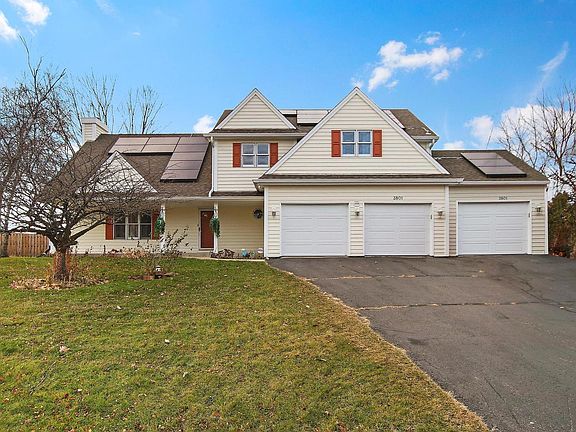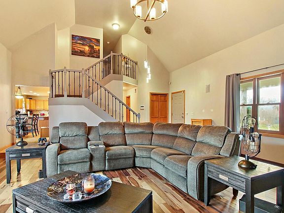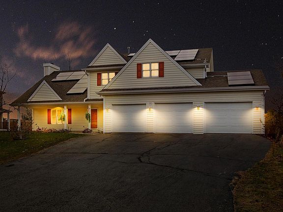 A fantastic home with Over 4000 Sqft living space, great features, water rights, and so many updates in the last 5 years. This Custom home is located in Sunrise Ridge Estates on over a half acre with a large fenced backyard! You will pull up to a 3-car garage, covered front porch, and freshly painted exterior. The grand entryway will impress with vaulted ceilings and leads to a spacious great room with 18' ceilings, a fireplace & doors leading to a 20'x16' Deck. The gourmet kitchen features plenty of Oak cabinets, Stainless steel appliances, granite countertops, a peninsula, two pantries & newly refinished hardwood floors. New flooring throughout the home and basement. Spacious 1st Flr Laundry room is off the kitchen and leads to a generous finished 3.5 car garage. 2nd floor offers three spacious bedrooms and two full baths. The primary bedroom offers a trayed ceiling, a large 15'x12' primary bathroom, plus a separate shower and a walk-in closet! This fully finished basement provides a great escape with a large bedroom, Family room, and full bath. The Basement also offers a secret bonus room/vault under the garage. This 880 Square foot vault/bonus room has a bank vault door with a bookcase to keep entry hidden. The bonus room with bar, storage, and new flooring offers a lot of possibilities with new solar panels, a gas generator, running water, electricity, and a pantry with shelves for food, canning, and storage. Outside you will find 2 large decks, a shed, and a large garden with a picket fence and critter fencing. The garden has mature fruit producers with Award-winning blueberries, grapes, asparagus, and more. In addition to the garden you will enjoy the 4 mature fruit trees inside the fully fenced yard. The home has had so many updates in the last 5 years. Updates include roof, natural gas generator, furnace, A/C, hot water tank, updated baths, light fixtures, built-ins, Solar Panels that provide huge savings on electric, New gutters with gutter guards, new paint in most of home, and newer appliances. This home also enjoys lake rights to Wonder Lake. Woodstock North High School. Taxes reflect no exemptions. Potential prepper home. The home is served by well water and a septic system. Taxes do not reflect any exemptions