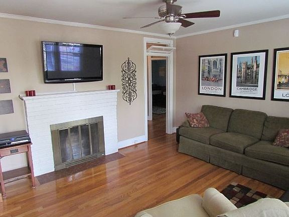 - Kitchen: Eat In, Counter Tops-Tile, Galley, Floors-Hardwood, Backsplash-Tiled, Cabinets-Painted, Ceiling Fan