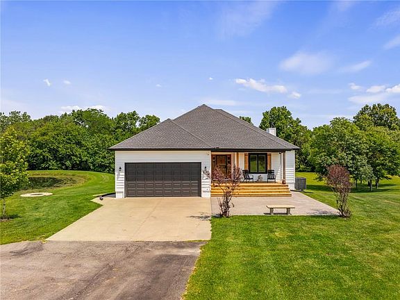 Discover your dream retreat on this picturesque 10-acre property, featuring a stunning 4-bedroom, 3-bath home. The main level showcases elegant hardwood floors, while two bedrooms offer plush new carpeting for added comfort. The finished basement is an entertainer's delight, boasting a full concrete bar complete with a sink, refrigerator, and cabinets. Enjoy the summer with an inviting inground pool with a new liner, and unwind on the expansive deck running the length of the house with a coincrete patio beneath. The property includes a fully stocked pond teeming with catfish, bass, sunfish, and crappie. A spacious 40 x 40 barn, with a 16 x 35 addition, features a wood stove, electricity, shelving, and two giant doors accommodating an RV, plus a regular door with an opener. The fourth bedroom is currently used as a gym, adding versatility to the home. Surrounded by 1,100 feet of 4-rail fencing, this property offers privacy and serenity. With everything in the home less than 5 years old and roofs on both the house and barn being 6 years old, this exquisite estate blends modern amenities with country living, offering you the best of both worlds.