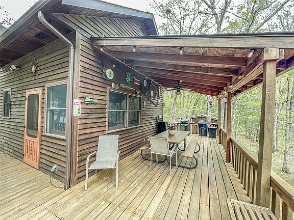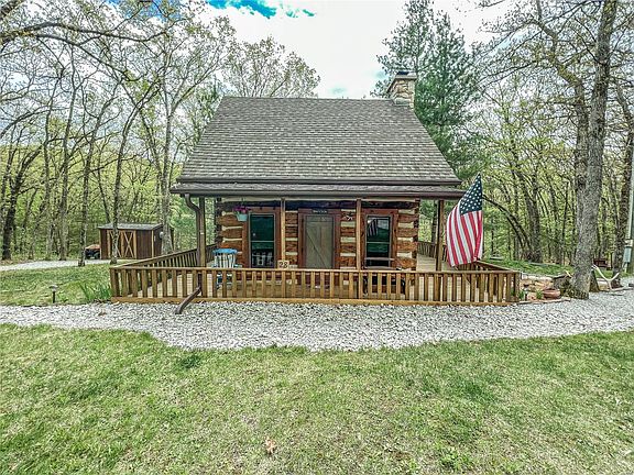 RARE OPPORTUNITY TO OWN AN AUTHENTIC LOG CABIN NEAR MARK TWAIN LAKE!This unique home offers a beautiful & well maintained 1 bedroom, 1 bathroom log cabin on 1.57+/-A in the desirable Crigler Estates.This cabin has a beautiful wrap around porch & large deck to sit & enjoy your family & friends.There are vaulted ceilings in the living room with a beautiful stone fireplace as the main feature of the home & a loft bedroom.The kitchen has been updated within the past year with new cabinets, countertops & appliances, which will convey. The property backs up to Corp ground, has a small garden shed for storage & sits at the end of the cul-de-sac for excellent privacy. You have access to fiber internet, you’re just minutes from Indian Creek Marina & fisherman access.The sellers will also leave some original beautifully handmade furniture which will include kitchen hutch, twin bed, chest & side tables.You do not want to miss your chance at owning this rare, unique & beautiful log cabin!