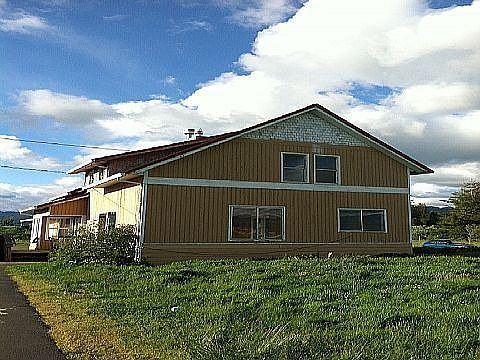 Beautiful remodeled 2 story farmhouse with 2 large deep garages on a half acre. Decks in front and back of house with picnic table. Driveway is paved.