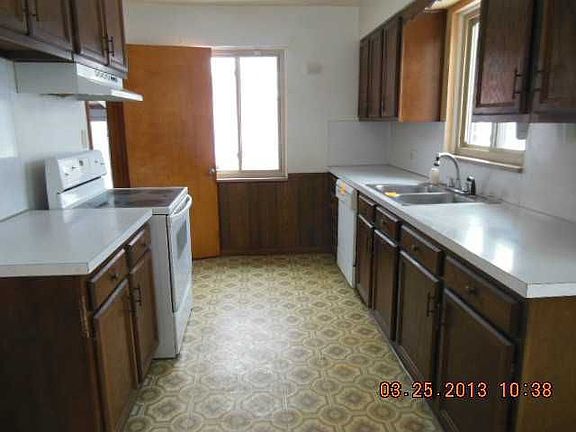 Brick 2 bedroom ranch with enclosed side porch. _Other_ room is kitchen in basement.