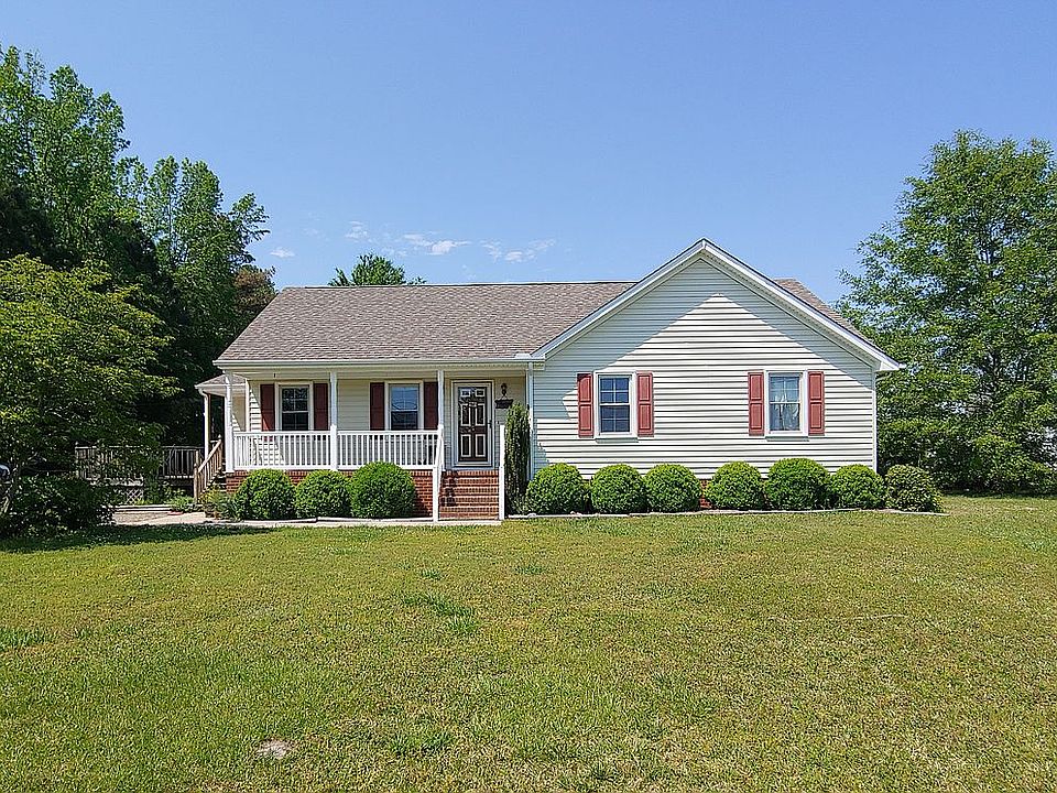 Beautiful, updated single family home in a peaceful neighborhood. Both baths and kitchen, and all flooring completely updated; two large porches to enjoy open views of field/forests adjacent. Work shed with electricity/concrete floor + chicken coop in the yard for projects and potential pets! Plenty of space for play and direct sunlight for gardening. Blueberry bushes, a pear tree and a crabapple tree line the backyard. ALL NEW 2020-2022: paint, light luxury vinyl plank flooring + baseboards throughout, washer/dryer, stainless steel kitchen appliances, quartzite countertops, stainless steel industrial sink, water heater, ceiling fans, hall/kitchen lighting, bedroom blinds, custom built bedroom closets, exterior Ring cameras/flood lights, exterior doors, and solid wood interior doors.