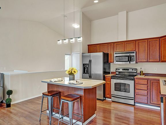 Beautiful interior! Vaulted ceilings, townhouse style condo. Master w/ walk-in closet, bay window, fresh paint. Lower floor bedroom w/ bath, lots of storage. Updated kitchen, Island w/ breakfast bar, SS appliances, laminate floor. Brand new quality carpet throughout, Brand new high end living rm blinds. Single car garage freshly painted. W/D stay. Great Location! Convenient to UMED, JBER, Midtown