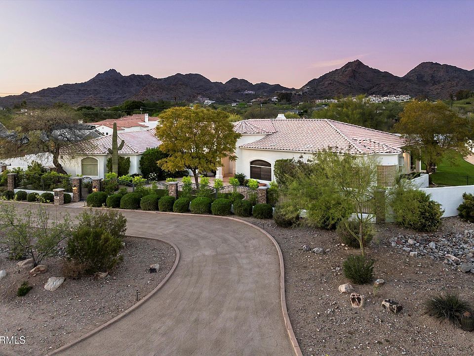 Positioned on a premium corner lot just under an acre, this elegant single-level estate captures stunning head-on views of Camelback Mountain and offers a rare combination of privacy, space, and timeless design. From the circular driveway to the gated courtyard entry, the curb appeal is immediate and lasting.