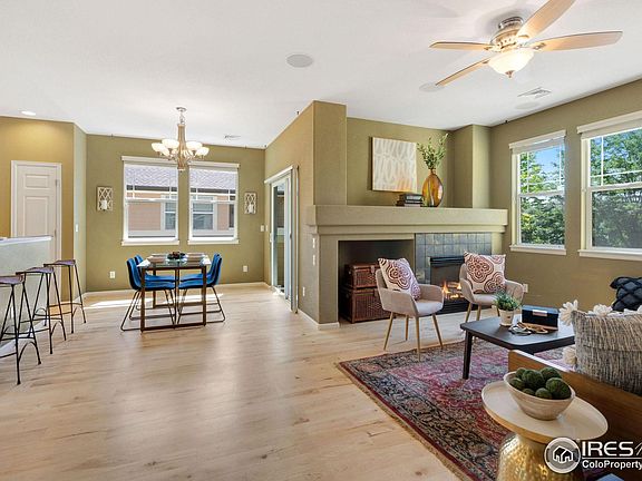 A rare opportunity to own one of the beautiful Triple Crown townhomes at Observatory Village. This former model boasts stunning wood floors, a well appointed kitchen with stainless appliances and granite counters, a gas fireplace, two outdoor living spaces (one of which is a private deck off of the master), and a fully insulated and finished 2 car garage. HOA maintains the yard! This location is everything and won't disappoint. SE Fort Collins is right in the middle of the newest shopping and dining, routes to sought after schools, and is close to trails and parks, This home comes with membership to the Observatory Village Pool!