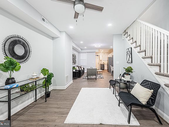 PICTURE PERFECT RENOVATION WITH 3 FINISHED LEVELS & OFF STREET PARKING! Features include wood flooring throughout the main level, a spacious living room, separate dining area, designer kitchen with Quartz counters, ss appliances, & tile backsplash, upper level with 3 generously sized bedrooms & 1 full bath, a fully finished basement with a family room and a 2nd full bath with a large walk-in rain shower, and convenient covered and fenced off street parking! Pack your bags and move right in!