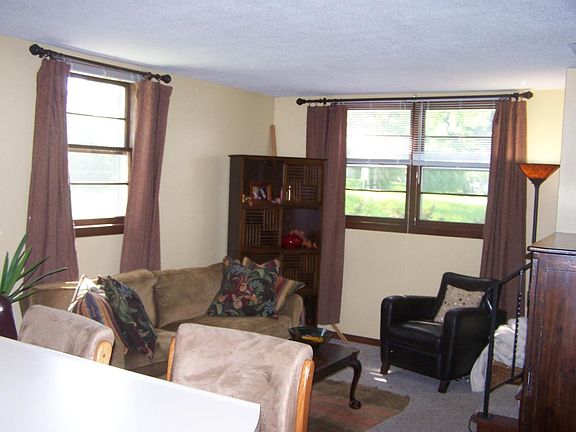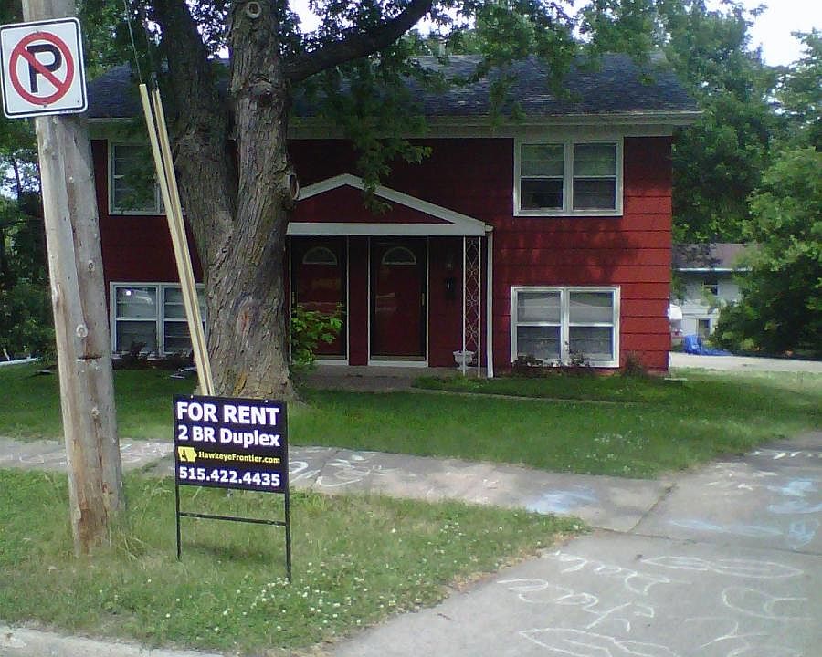 This split-level 2 bedroom, 1 bathroom duplex includes a one-stall garage with an automatic opener and a fully enclosed 5 x 9 storage unit. Conveniently located in a well established residential neighborhood on a quiet, low traffic cul-de-sac street, the apartment includes a washer/dryer in the unit, an automatic dishwasher, a newly remodeled kitchen, and central air conditioning. And we do the mowing! Sorry, no smoking. 3802 Hillcrest Drive, $800 deposit, pets negotiable in rent, over 800 sq ft. Available October.