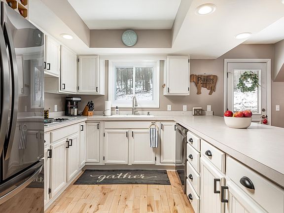 Move in ready home in Holiday Hills! This 1.5 story home features a main floor primary bedroom suite, main floor laundry, a cozy wood burning fireplace, sunroom, and a functional open layout. Upstairs you'll find two generous sized bedrooms and a full bath. Lower level provides an abundance of storage or could easily be finished to be additional living space. Private and wooded backyard is ready to be enjoyed from the back deck! Many updates were completed in 2020 including a new roof, updated electrical, refinished wood floors, paint throughout, new sinks and toilets, irrigation added, second water heater, new garage door and more! Amazing location just minutes to downtown Traverse City with Mt Holiday and the TART Trail just down the road!