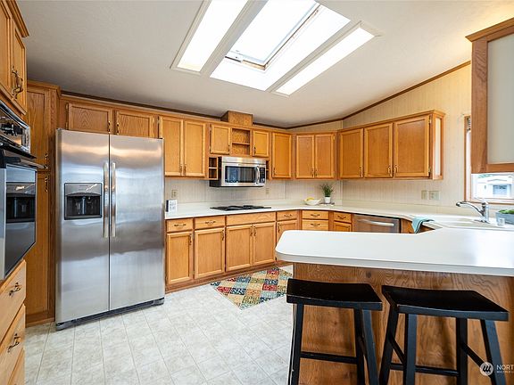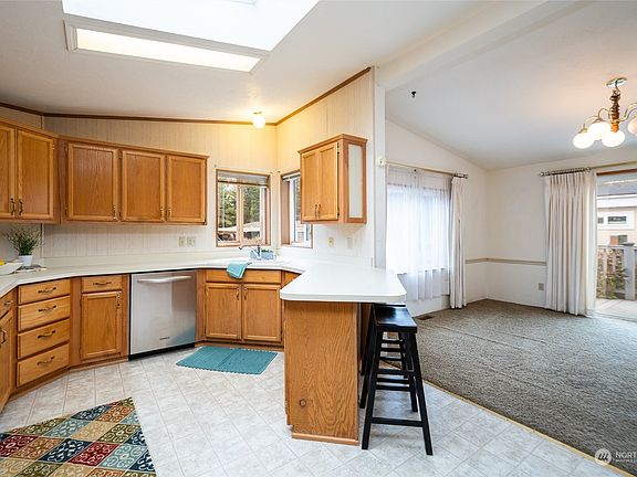 Welcome to James Street Estates an active 55+ co-op community w/low HOA fees. This home has 1716 sqft, an attached carport and detached garage w/work shop. The back yard is fully fenced w/ 3 varieties of apple trees and large patio to enjoy the space. The front deck invites you into the spacious living room w/ a gas fireplace insert, vaulted ceilings and is located in the heart of the home. The kitchen has ample counter space w/a window above the sink looking out to the neighborhood, an eat up bar and a formal dining room. The utility room has an entrance off the parking area w/a sink & access to kitchen. The 3rd bdrm has been converted to a den w/French doors. Primary suite has walk in closet, en-suite bthrm and slider to the back yard.