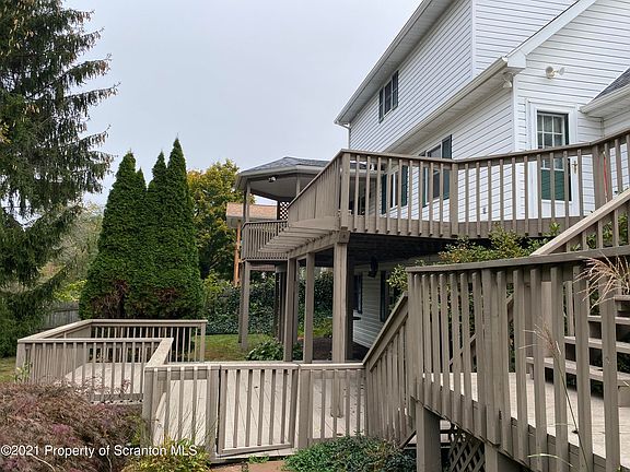 Perfectly maintained 4 bedroom Cape Cod located on a quiet Street in Moosic. Features include a Primary bedroom and bath suite located on the first floor, 2 additional full baths and a half bath. Large living room and dining room with hardwood floors. Kitchen has Oak cabinets, tile floor. Spacious 3 additional bedrooms with oversized closets and additional storage. Lower level has a fourth bedroom and an additional finished room for family room or optional office space. Newer 3 year old roof with Architectural shingles and new gutters installed in 2018. Very large 2 tiered deck overlooking a very private back yard. All measurements and information approximate and not guaranteed. Please wear masks and follow all CDC guidelines. Showings begin Monday 10-25-21 only between 11:00 am thru 5:30 pm use Showing Time.