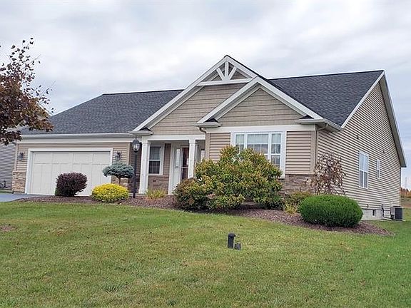 Gorgeous S & R built "Cottage" Ranch in popular Starlight Estates! Better than new, without the wait of building! This beauty greets you with pretty stone accents, lovely paver walkway up to the pillared covered front porch, and only ONE small step into the home! Pretty vinyl shakes spotlight the peaks! Oversized 2-car garage allows room for vehicles PLUS extra storage! HOA takes care of ALL exterior maintenance, including roof, siding, landscaping, mowing, plowing, etc! Stunning interior features include gleaming hardwoods, granite countertops, all stainless appliances, gas fireplace, and spectacular screened patio off dining area with amazing view! And just wait until you see the BRAND NEW Master No-Step tiled shower! The open floor plan will accommodate all your family gatherings and there is plenty of guest/office space with the TWO extra bedrooms! Don't forget the first-floor laundry and Central Air! Everything you need here to just relax and enjoy life! What are you waiting for?!
