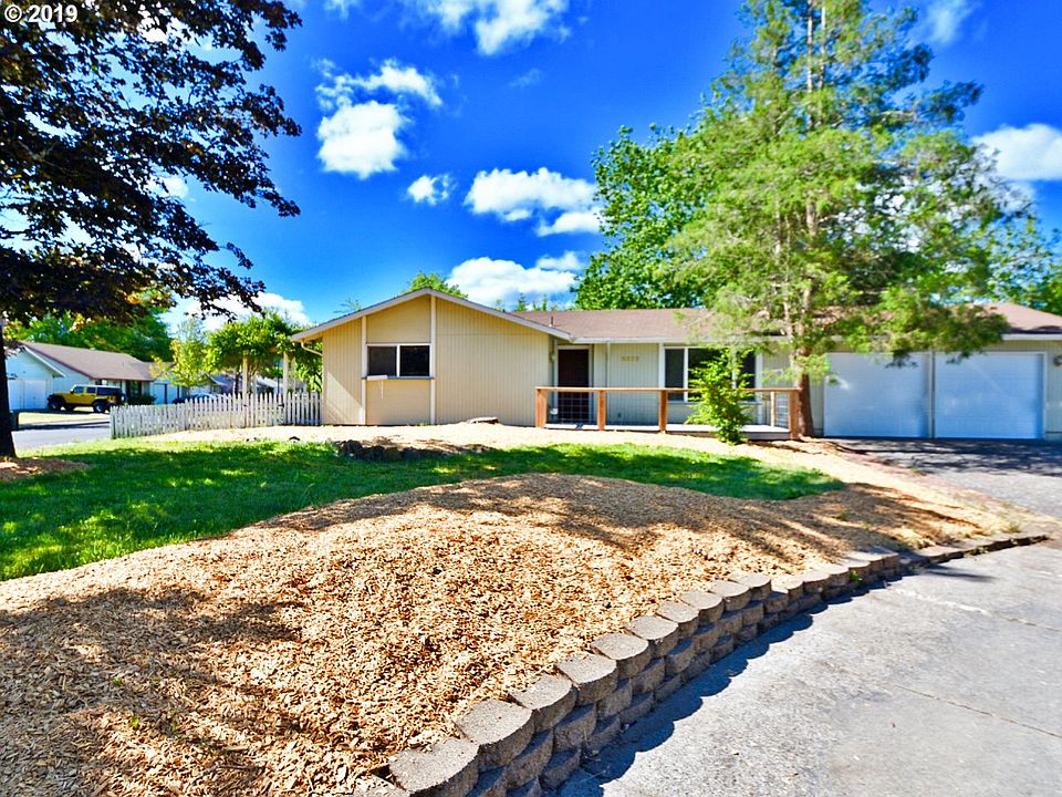 Adorable single story home with updated kitchen. 3 bedroom 2 bath. Front deck built in last two years. Side fenced garden area with raised beds. Shed in the back that is finished with power could be used as home office. Large two car garage. The perfect starter home in Southwest Eugene. Buyer to do due diligence.
