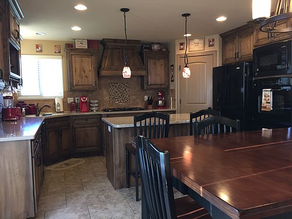 Back on the market. Buyers financing collapsed. Beautiful west facing fully finished rambler. Features 4 bedrooms and 3 full baths. Large chef's kitchen with gorgeous custom cabinets, double oven and 5 burner gas stove. Second kitchen/bar in basement with custom cabinets, full sink with disposal and natural stone backsplash. Custom three tone paint throughout. Basement walkout. Two family rooms with fireplace, stone veneer walls and built in speakers. Master suite with double sinks, extra deep tub and large walk-in closet. Extra-long RV pad, full landscaping, automatic sprinklers, great patio, and outdoor speakers. Contact Ryan at 801-690-1157 to schedule a showing.