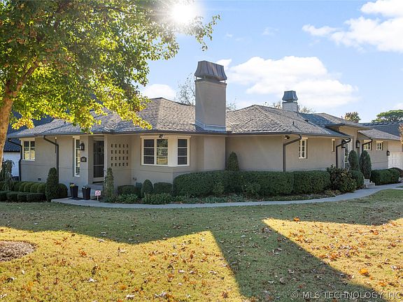 Beautiful home in BROOKSIDE! One level, 4 bedroom with 3 living areas and 2 indoor fireplaces. Modern renovation down to studs. Refinished with impeccable quality! Open floor plan, 12' ceiling in den and spacious master bedroom with two walk-in closets. Large covered outdoor living area with grill (gas connection) and 3rd fireplace for year round entertainment. Just 10 minutes from downtown, walking distance to brookside restaurants and shopping, and close to the Gathering Place. Professionally landscaped with backyard privacy fence.